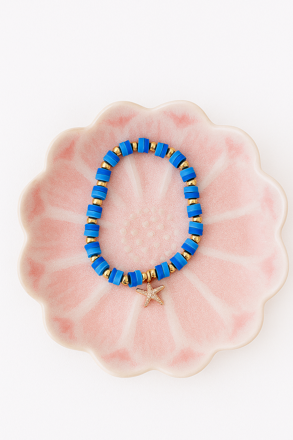 Add a splash of sweetness to your summer look with this handmade bracelet, featuring soft lilac heishi beads paired with classic faux pearls. Finished with a gold-toned seashell charm, it’s perfect for beach days, brunch dates, or gifting to your favorite ocean lover.