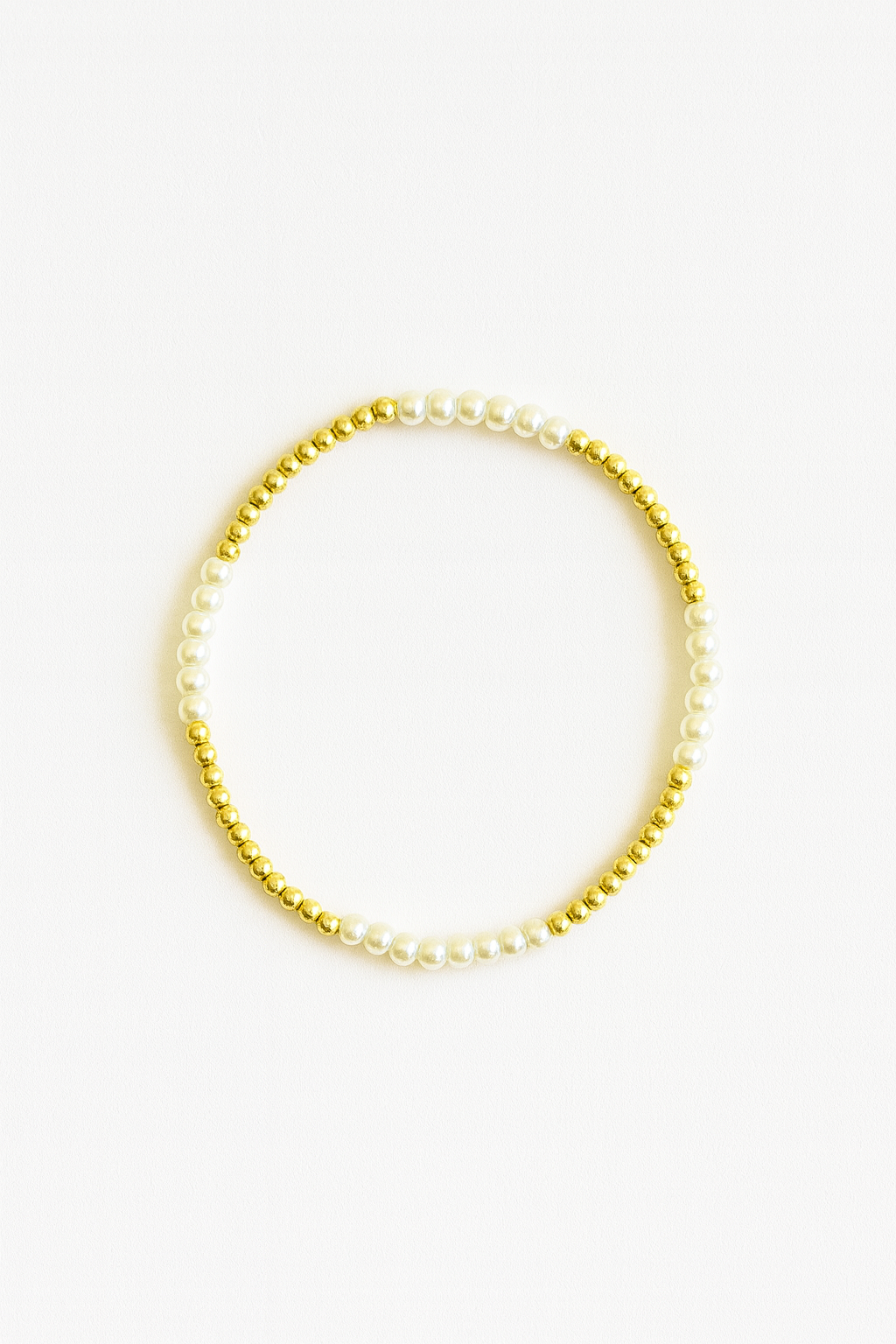 Simple and chic alternating pearls and gold beads. Avoid too much water and chlorine.